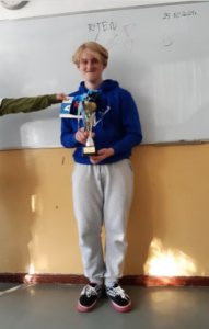 Kuba pokazuje nam na koniec swoje medale i dyplomy i puchar z zawodów, a potem robimy sobie wspólne pamiątkowe zdjęcie.