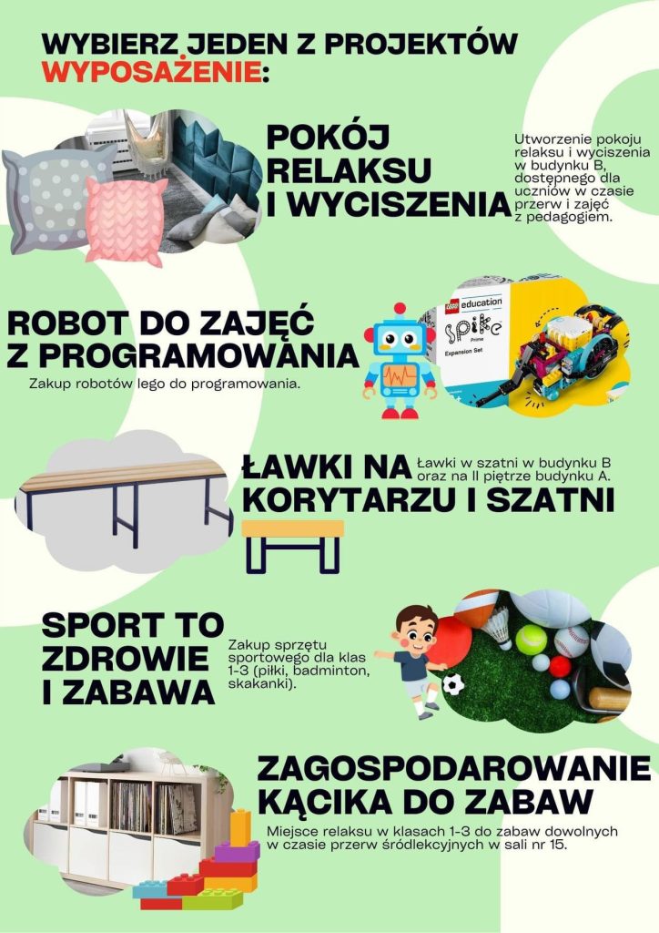 Znamy już wszystkie projekty, które wezmą udział w głosowaniu w Budżecie Uczniowskim w roku szkolnym 2023/24.